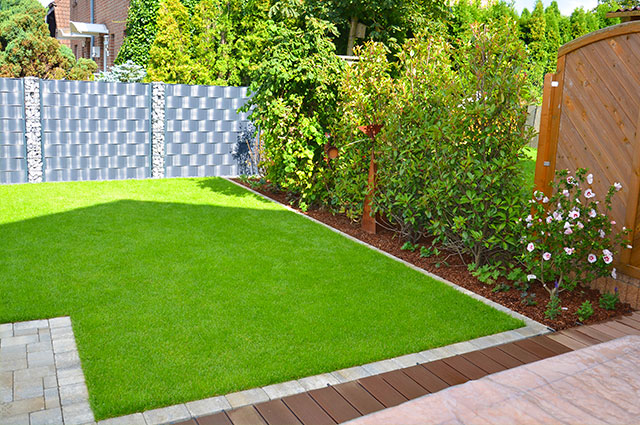 Gestaltung eines Gartens mit Pflanzen und Rasen
